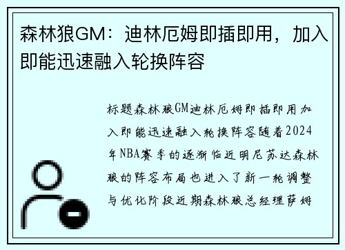 标题:森林狼GM:迪林厄姆即插即用,加入即能迅速融入轮换阵容